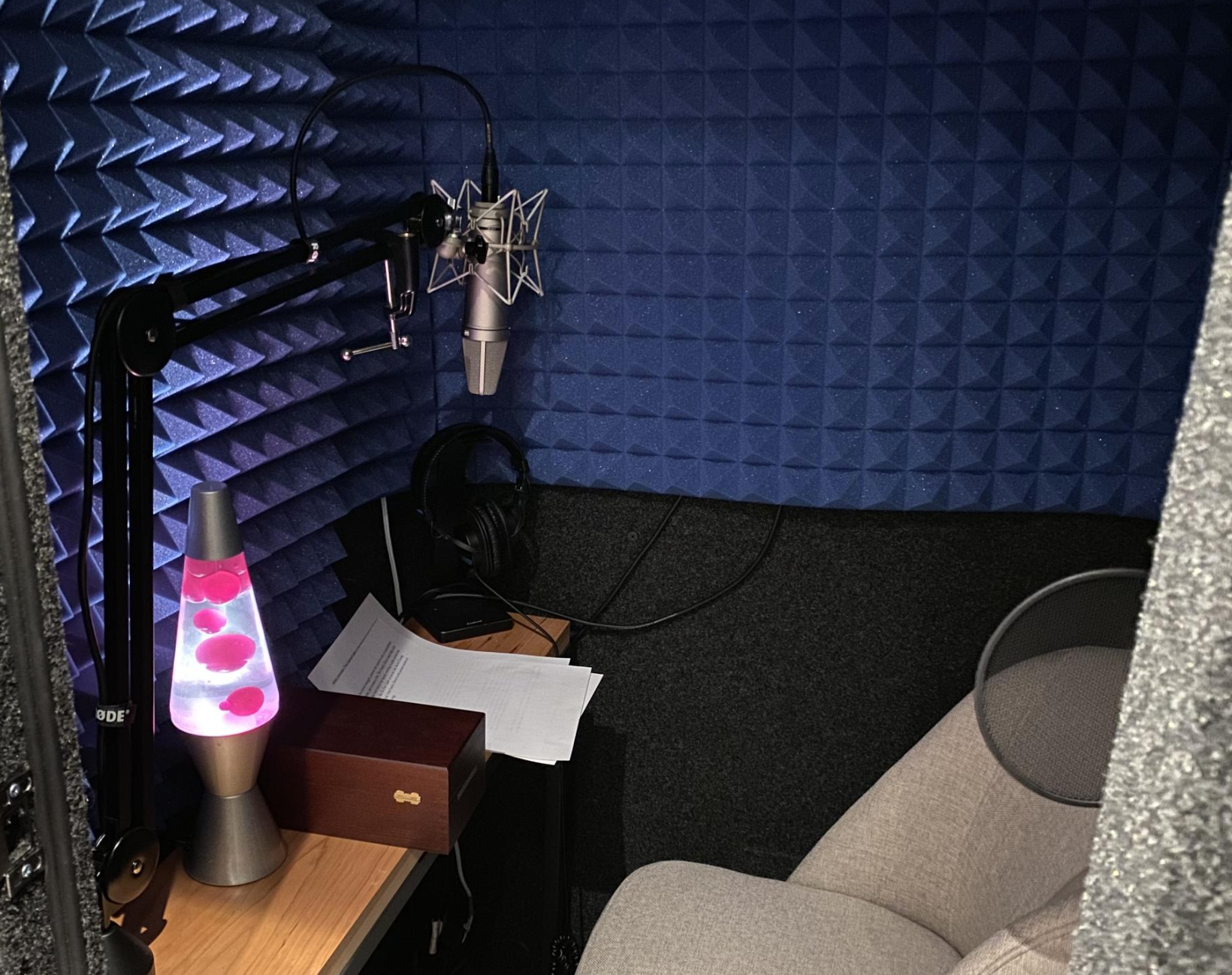 Thankfully, I’ve learned a lot in the ensuing 10 years, and have also, via the grace of the audio gods, somehow acquired enough of a production budget to build my own studio space in a cozy basement studio in Greenpoint, Brooklyn. Earlier this year, my friend Alan and I spent two truly endless days in said basement attempting to decipher the instructions for constructing a Whisper Room, where I now record all of the narration for “Family Ghosts,” soothing my constant fear that the whole thing is going to collapse on my head with the calming presence of a magenta lava lamp.