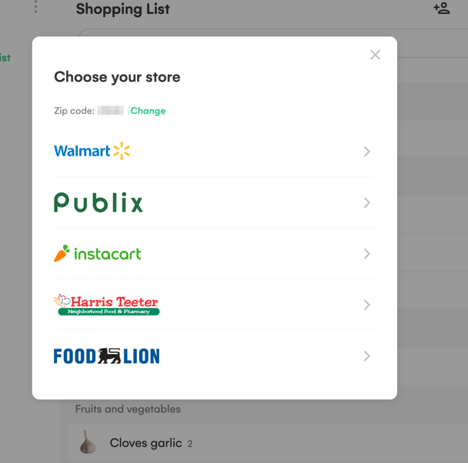 You can then select from which store to shop, based on the online grocery delivery services available in your region. This is an area where Whisk outshines many recipe app competitors, which tend to overlook this final step.
