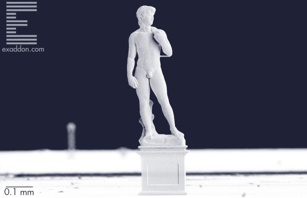 “It is more than just a copy and downsized model of Michelangelo’s David,” said Exaddon’s Giorgio Ercolano in a company blog post. “Our deep understanding of the printing process has led to a new way of processing the 3D computer model of the statue and then converting it into machine code. This object has been sliced from an open-source CAD file and afterwards was sent directly to the printer. This slicing method enables an entirely new way to print designs with the CERES additive micromanufacturing system.”