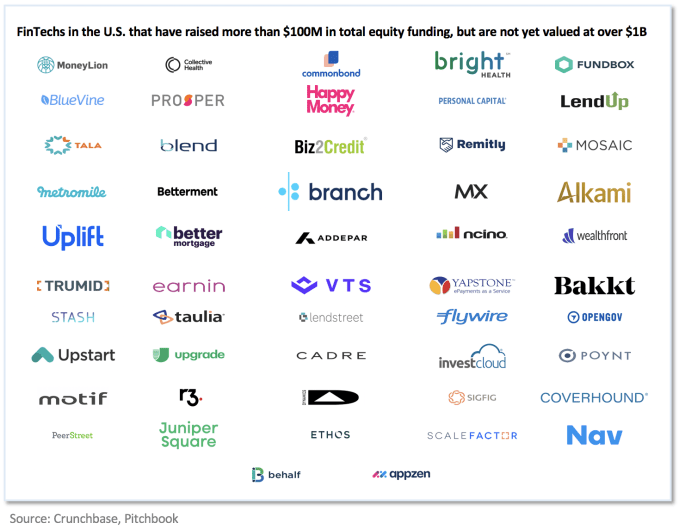 - Only one fintech company will go public (SoFi) and none of the unicorns will be acquired. Overall, it will be another tough year on liquidity for fintech.