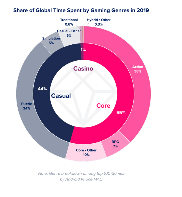 Core games also accounted for the majority (76%) of game spending, followed by casual (18%), then casino (6%).