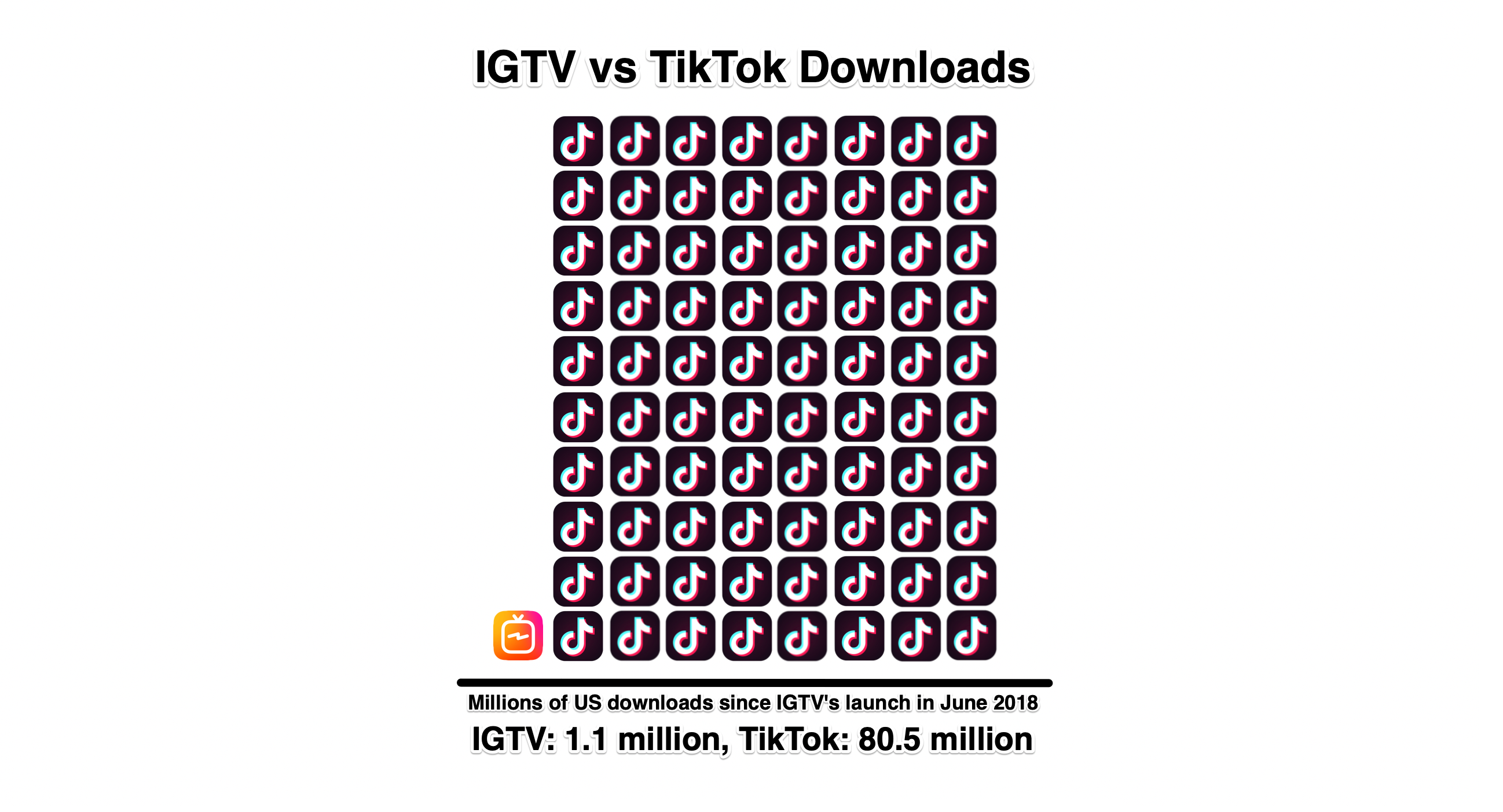 At most, 7 million of Instagram’s 1 billion-plus users have downloaded its standalone IGTV app in the 18 months since launch. And now, Instagram’s main app is removing the annoying orange IGTV button from its home page in what feels like an admission of lackluster results. For reference, TikTok received 1.15 billion downloads in the same period since IGTV launched in June 2018. In just the US, TikTok received 80.5 million downloads compared to IGTV’s 1.1 million since then, according to research commissioned by TechCrunch from Sensor Tower.