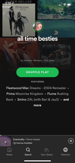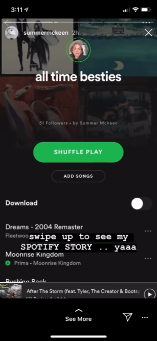 Spotify is testing a new Stories feature that will allow select influencers to incorporate video elements into their public playlists, TechCrunch has learned and Spotify confirmed. The first influencer to test the feature is makeup and fashion YouTube star Summer Mckeen, who currently has a social media fan base that includes 2.33 million YouTube subscribers, 2.1 million Instagram followers and 126,455 Spotify followers. Mckeen is using the new feature to introduce a playlist of her all-time favorite songs, which she’s titled her “all time besties.”