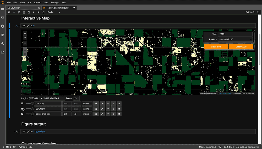 To enable more businesses to get started with working with this data (and become Descartes Labs customers), the company is betting on the standard tools in the industry, with hosted Jupyter notebooks, Python support and a set of APIs. It also includes tools to transform and clean the incoming data from Descartes’ third-party partners in order to make it usable for data scientists.