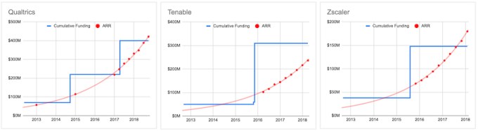 Accordingly, their first institutional rounds were much larger than the typical Series A investments. Qualtrics, Tenable and Zscaler raised $70 million, $50 million and $38 million, respectively, compared to the average $10 million Series A for the other companies in the data set.
