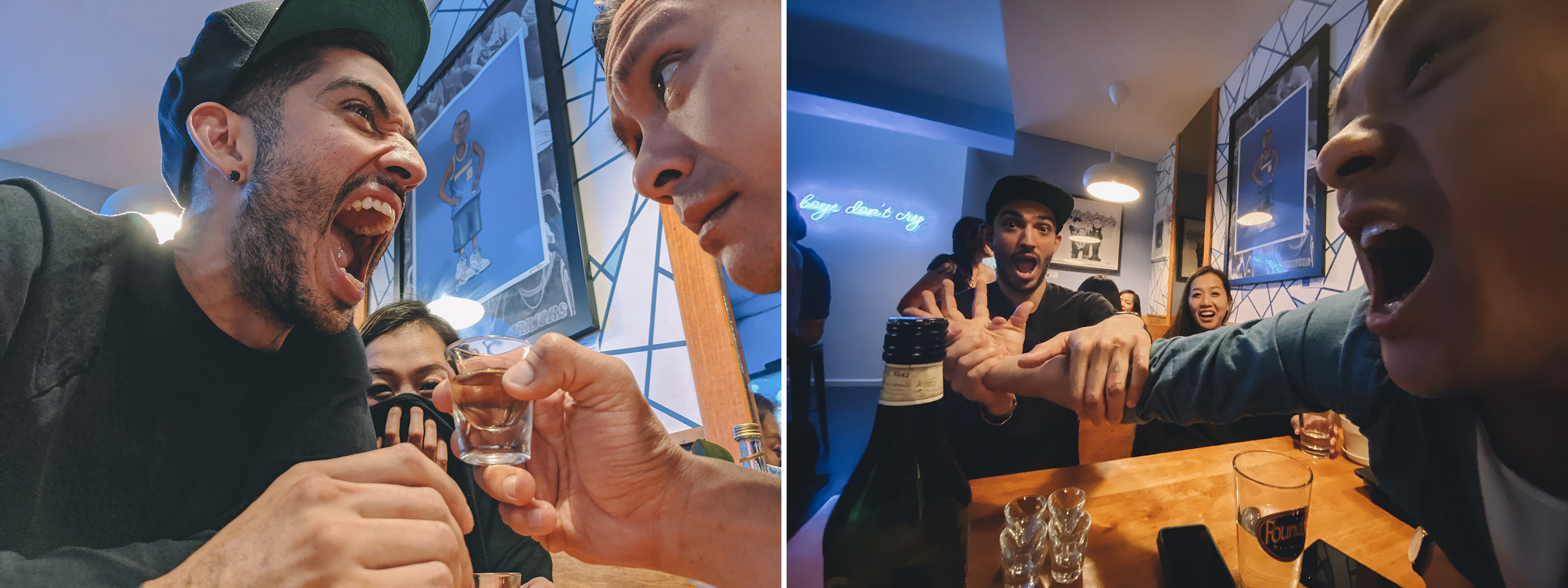 Pixel 4 yields brighter images, but the iPhone 11 Pro kept the bar’s ambiance. Plus shooting super-wide on humans adds a certain quirkiness.