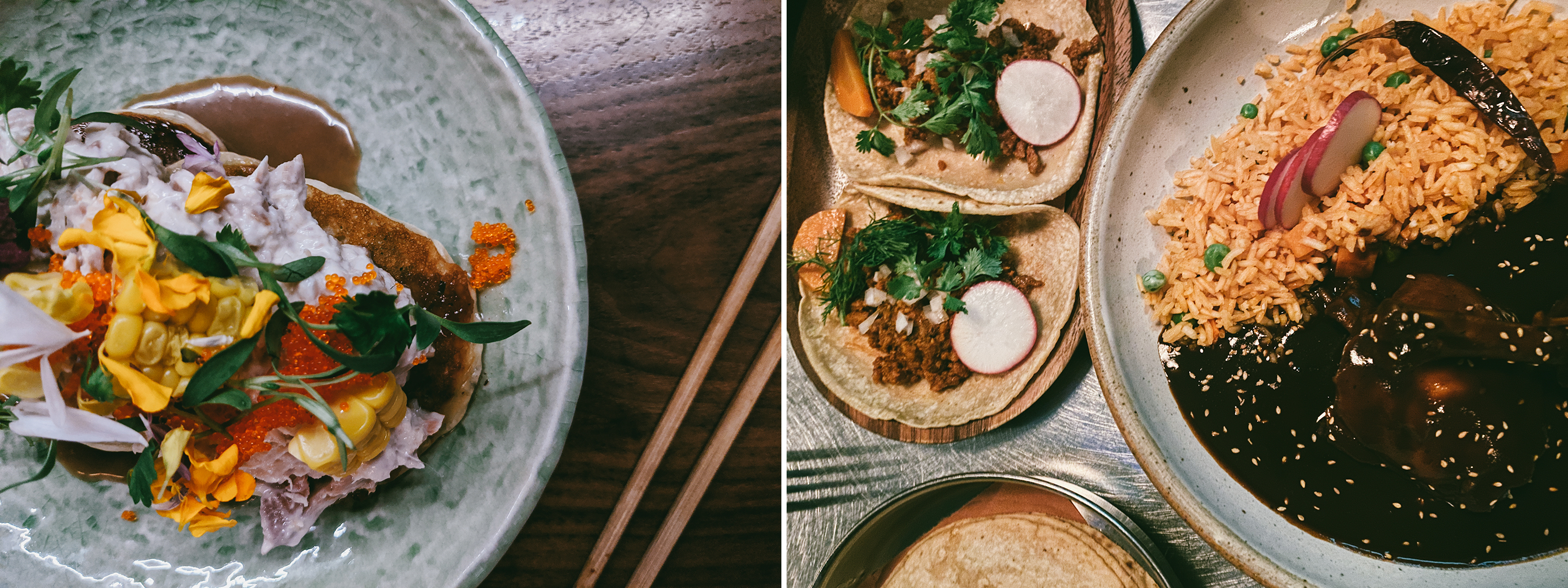 Japanese and Mexican in low light.