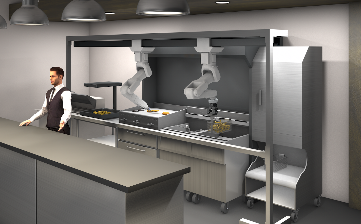 “They can save on food costs, labor costs and improve the real estate footprint” with the new design, says Sinnet. “We are showing how this robot will improve profit margins by a set amount.”