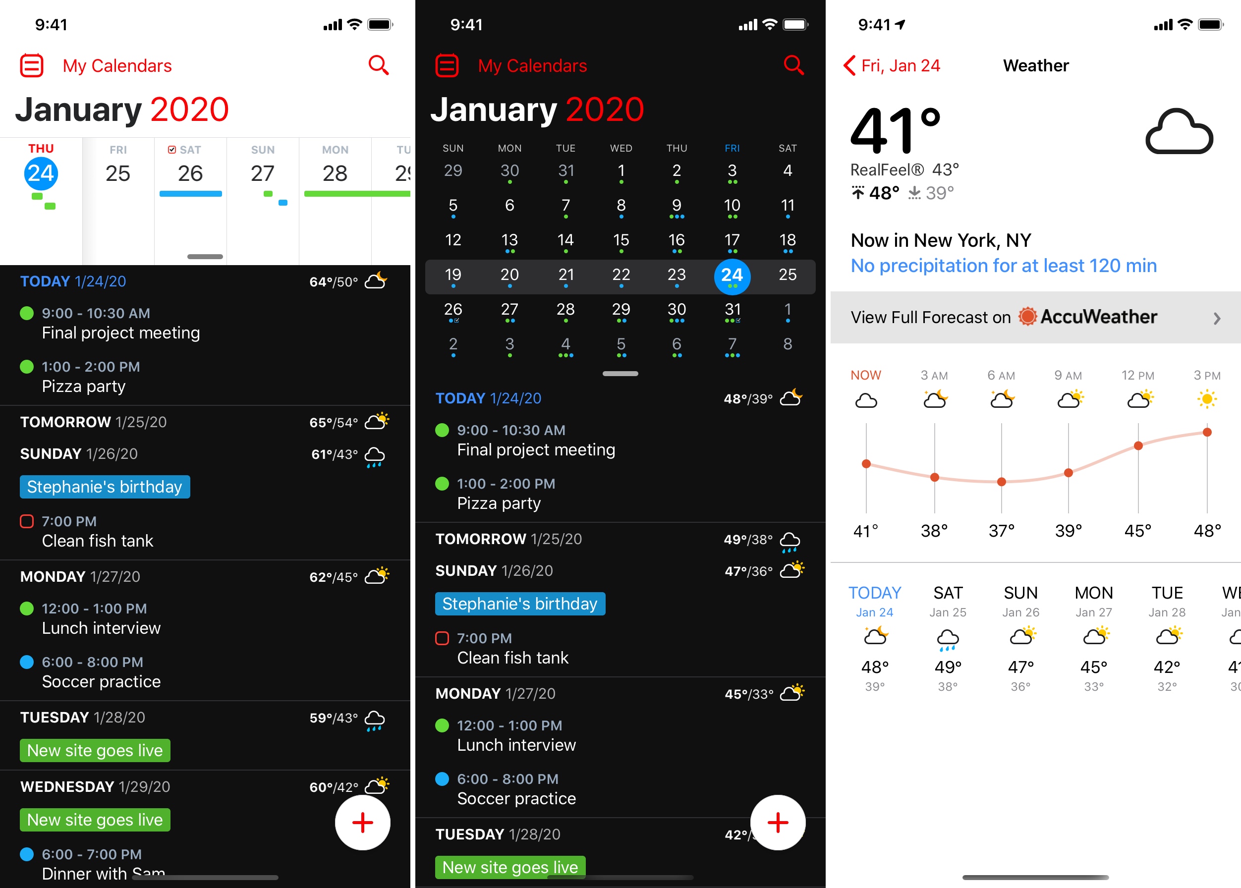While the interface of the Mac app hasn’t changed much, the iPhone app is getting a nice design update. In addition to dark mode, you can now swipe up and down on the top area to switch from the default DayTicker view to a month view and to a full-screen vertical view.