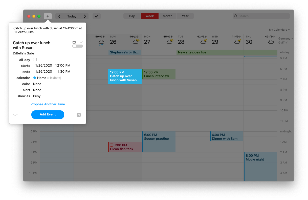 When it comes to new features, Fantastical now has a built-in meeting proposal feature. When you create an event, you can add other options if you haven’t decided on a specific time just yet. You can see all proposed events in your calendar with a “Proposed” label and your invitee receives an email with event details. When they select a date and time, your proposed events are replaced by a single event.