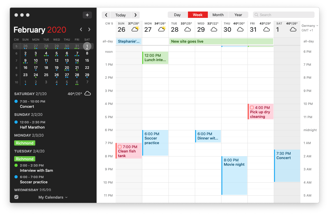 Finally, you can enable weather forecasts in Fantastical. You can click on weather icons in the DayTicker or week view to check the weather in the coming days. If you’re traveling, you can also open an event to see the weather in that location at the time of your event. The company has partnered with AccuWeather for that feature.