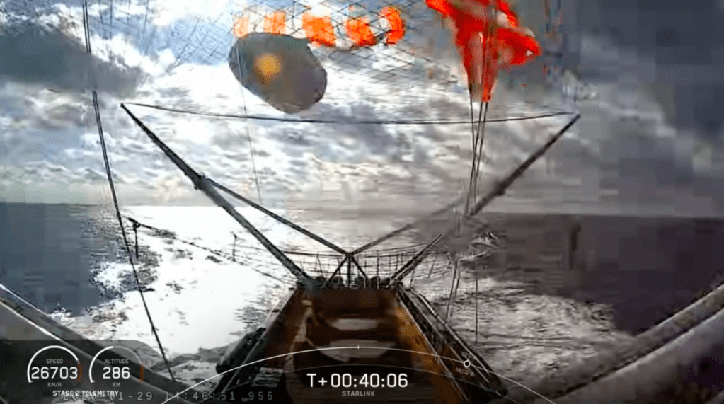 SpaceX is one step closer to an even more re-usable launch system today, after it successfully recovered one of the halves of the fairing used on its Starlink satellite launch today. The fairing half was caught by its “Ms. Tree” vessel, a ship at sea in the Atlantic strung with a large net specifically for the purpose of recovering these launch craft components.