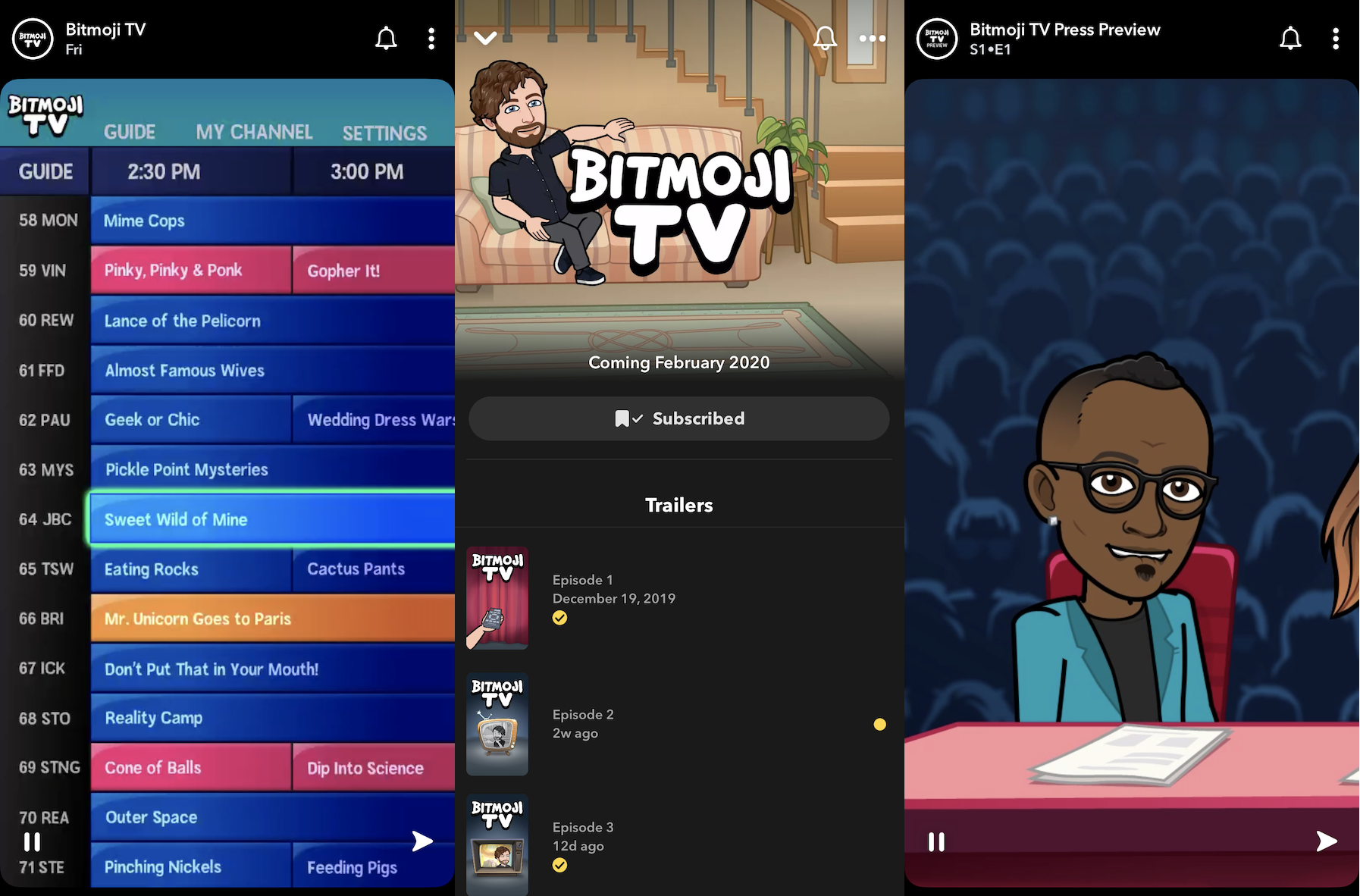 Having watched the first three episodes, I’m pretty certain Bitmoji TV is going to be a hit. The show embodies the whimsy of Snapchat and the youth culture of the community who uses it. It’s rare to see something so premium but so unabashedly kooky. It’s reminiscent of the Rick and Morty “Interdimensional Cable” episodes that similarly feature rapid-fire snippets of fake and absurd TV shows.