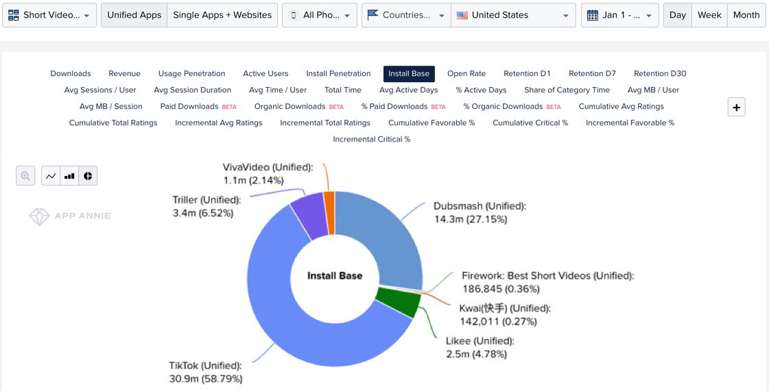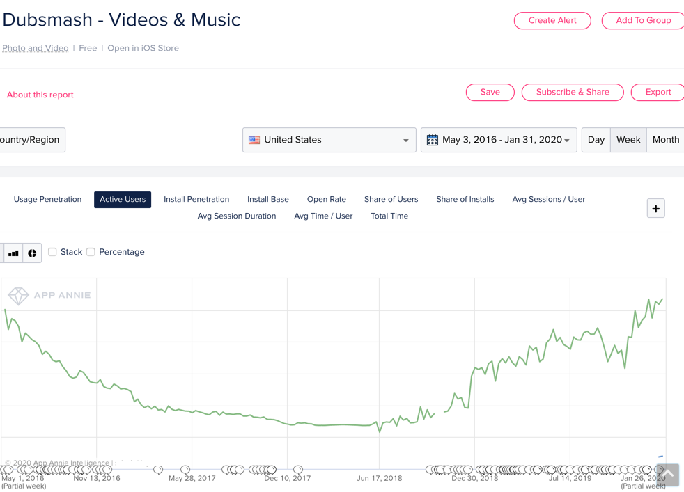 In terms of active users outside of TikTok, Dubsmash has 73% of the U.S. market, compared to just 23% on Triller, 3.6% on Firework and an embarrassing 0% on Facebook’s Lasso. And while Triller began surpassing Dubsmash in downloads per month in October, Dubsmash has 3X as many active users and saw 38% more first-time downloads in 2018 than 2019. Dubsmash now sees 30% retention after a month, and 30% of its daily users are creating content.