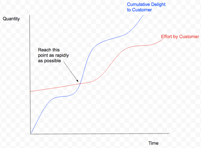But are these enough? Optimistic, future-focused entrepreneurs often concentrate on these moments of delight. However, to reach product-market fit, a startup must also consider the implicit costs to a customer that come along with a new product, including money (e.g. the product’s price), time (onboarding/changing habits) and effort (learning to use your product).