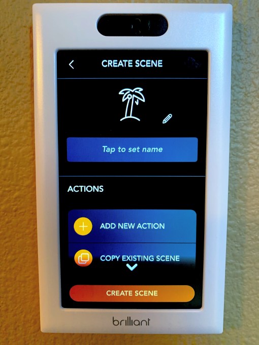 I found the overall menu system a bit confusing, though, and takes a while to navigate. That especially becomes a problem when you want to program scenes (maybe to turn on all the different smart lights in your living room or bedroom). For this, you have to program both a scene that turns on all the lights, which take a few taps for every single one — and then a second scene that turns them all off. Because you can duplicate scenes, that second step is a bit faster, but I couldn’t help but think that there had to be a better solution for this. At the same time, though, this allows you to create pretty complex scenes. You can do most of this through the Brilliant app on your phone, too, which is probably the way to go as it’s a bit easier and faster.