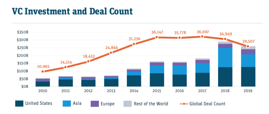 In 2014, for example, 31,236 deals led to around $110 billion in invested VC capital. By 2019, fewer total deals (29,507) led to over $250 billion in invested venture dollars. Fewer entries but greater throughput implies larger rounds, good news for the growth- and late-stage markets. After all, larger startups, especially the unicorn mob, love nine-figure checks.
