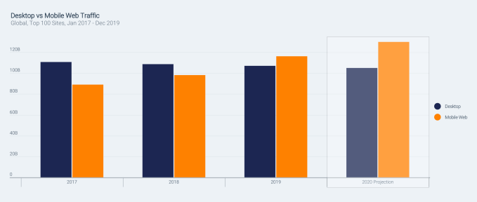 Mobile adoption around the world is having a significant impact on the web’s traffic. According to a new report from SimilarWeb, out today, mobile web traffic has jumped 30.6% since 2017, while desktop traffic dropped 3.3%. But it’s not just the numbers that are changing. Mobile visitors also behave differently from their desktop web counterparts, staying on pages for shorter periods of time, for example, which is impacting core metrics web publishers today track.