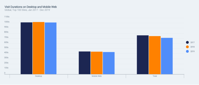 Mobile is driving these traffic increases, but mobile visitors don’t stay as long on the site. Across platforms, the overall time spent on websites has dropped by 49 seconds from 2017 to 2019, the report found.