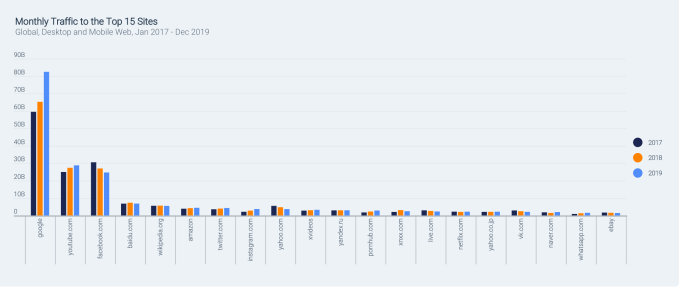 The data for the report was gathered from January 2017 to December 2019, and tracked desktop and mobile web traffic, as well as Android app use.