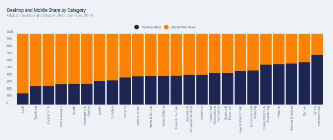 In addition, mobile has become the platform of choice for visiting certain categories of websites. Mobile traffic dwarfs desktop on adult sites, gambling sites, food & drink, pets & animals, health, community & society, sports and lifestyle. And over the years, other categories shifted to become more mobile as well — including news and media, vehicle sites, travel, reference, finance and others.