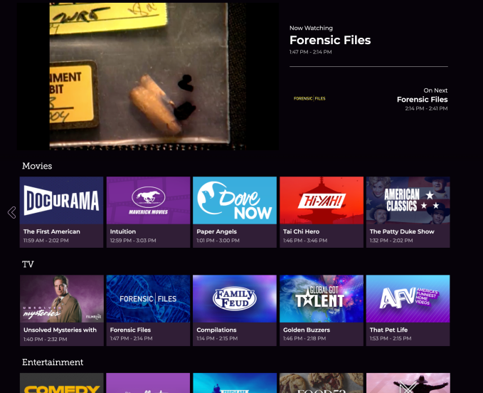 On top of that, the content on Redbox Free Live TV is fairly niche — news and entertainment, but limited to older shows and movies, for the most part, along with content from digital brands.
