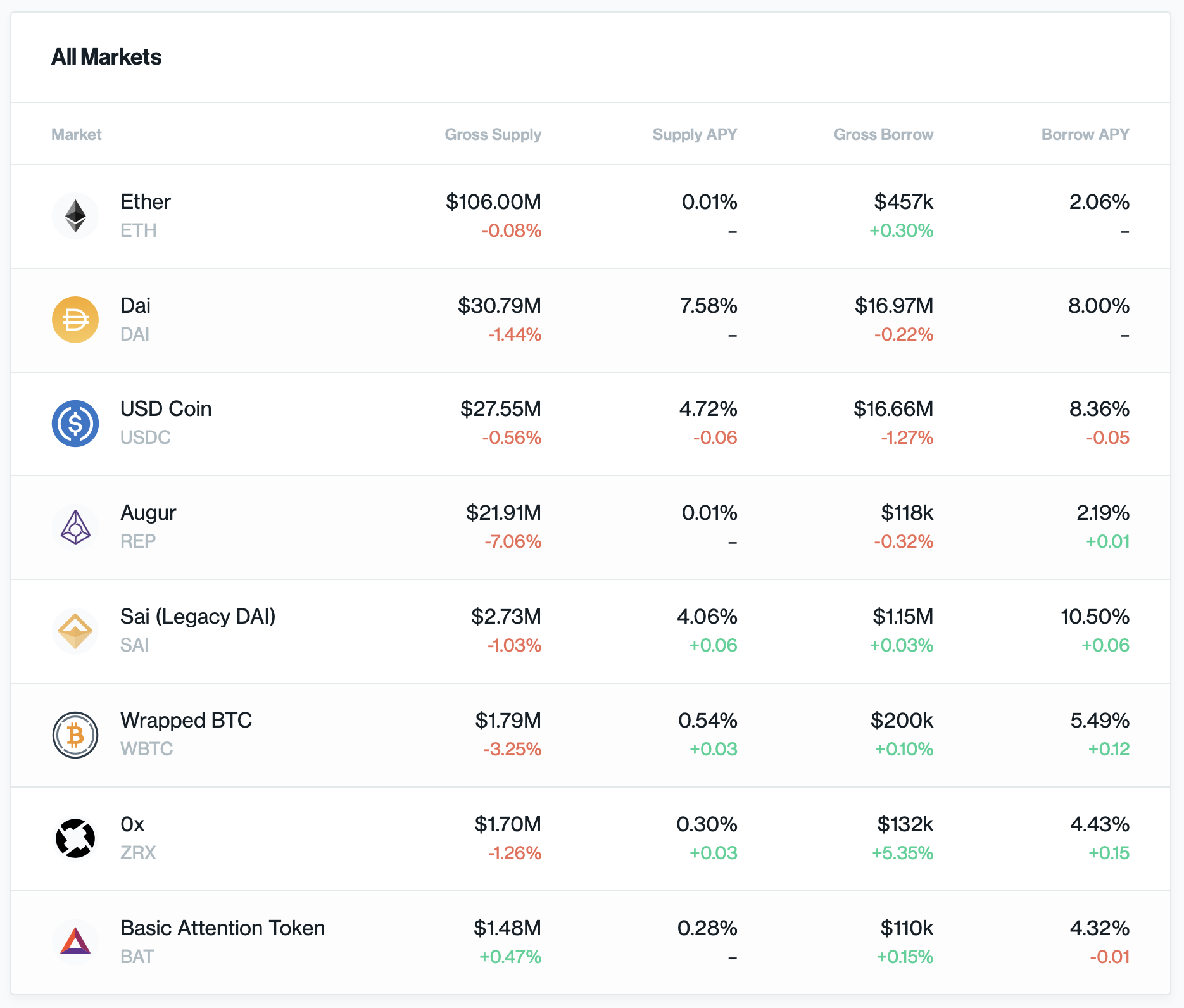 Popular projects in this category include Compound (pictured below) and dYdX.