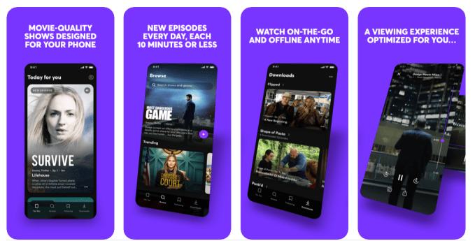 Much has been made about Quibi’s potential to reimagine TV by taking advantage of mobile technology in new ways, but the app itself looks much like any other streaming service, save for its last app store screenshot showing off its TurnStyle technology.