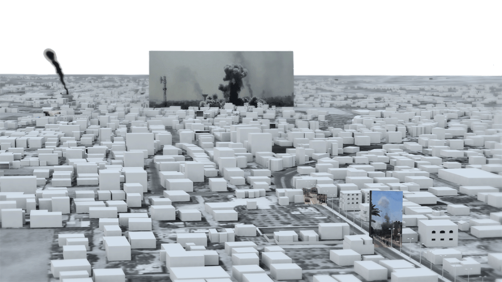 “On the one hand you have mixing the digital world and the real, and on the other you have the mixed reality of the media environment, where there’s no agreement on reality and all these misinformation campaigns. What’s important about Forensic Architecture is they’re not just presenting evidence of the facts, but also the process used to arrive at these truth claims, and that’s extremely important.”