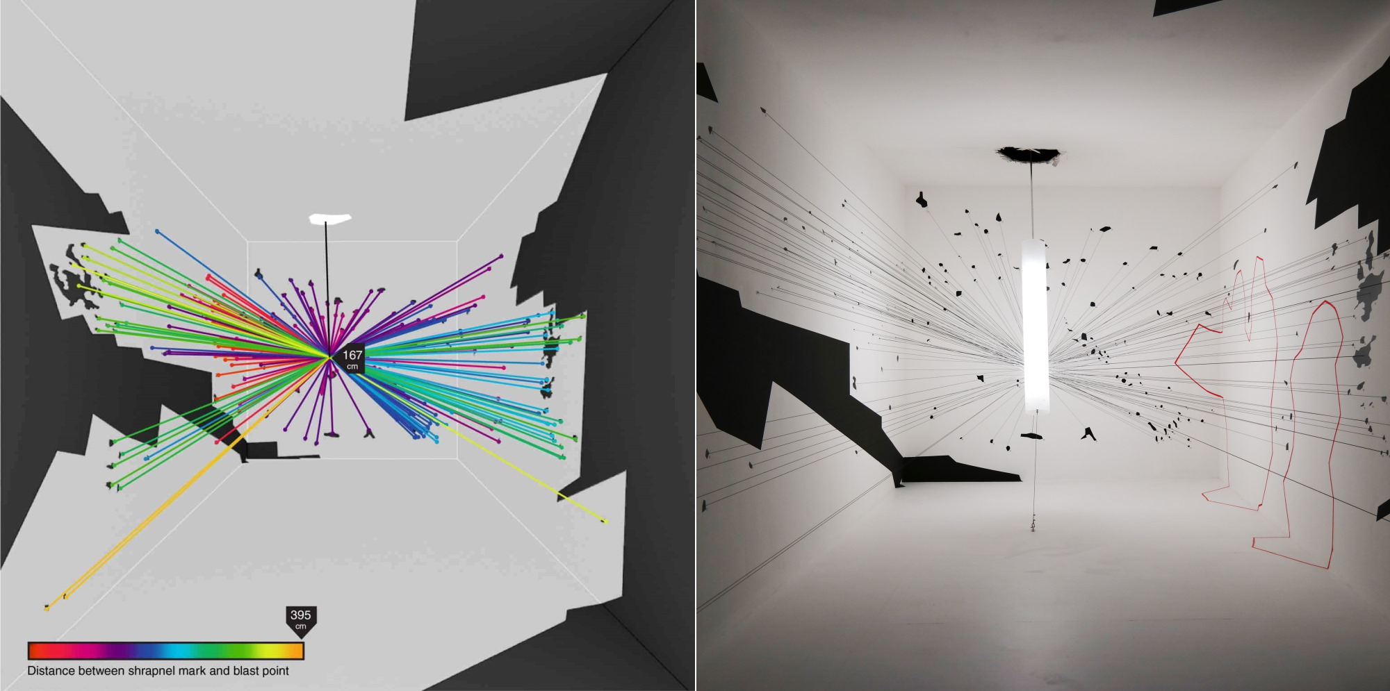 “We started using this technique when in 2013 we met a drone survivor, a German woman who had survived a drone strike in Pakistan that killed several relatives of hers,” Weizman explained. “She has wanted to deliver testimony in a trial regarding the drone strike, but like many survivors her memory was affected by the trauma she has experienced. The memory of the event was scattered, it had lacunae and repetitions, as you often have with trauma. And her condition is like many who have to speak out in human rights work: The closer you get to the core of the testimony, the description of the event itself, the more it escapes you.”