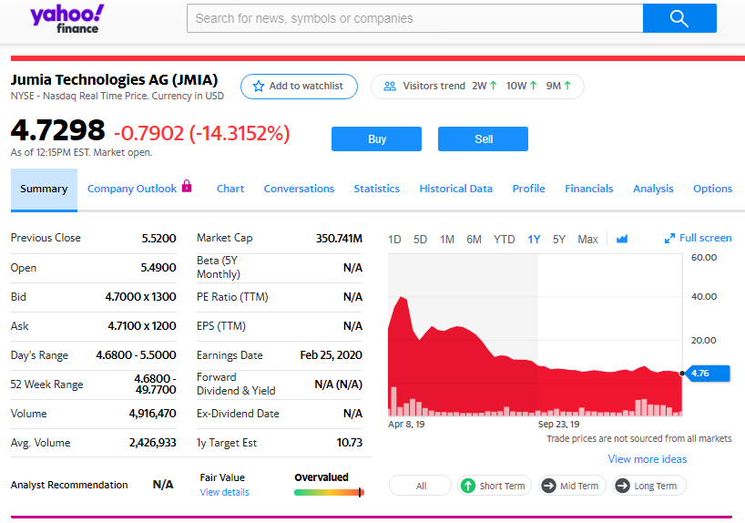 Surprisingly absent from Jumia’s earnings call (and the subsequent Q&A) was discussion of the company’s share price, which spiked then plummeted after its April 2019 NYSE listing.