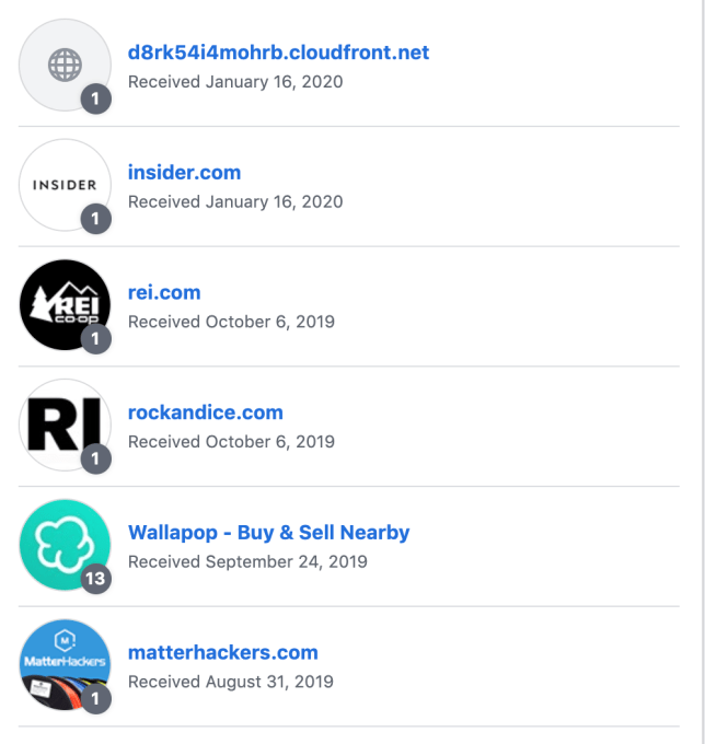What did you learn from their inclusion in the Off-Facebook Activity list? That the magazine appears to have a data-sharing arrangement with outdoor retailer Rei.com, given how the pair appeared at the same point in my list. However neither would confirm this when I asked
