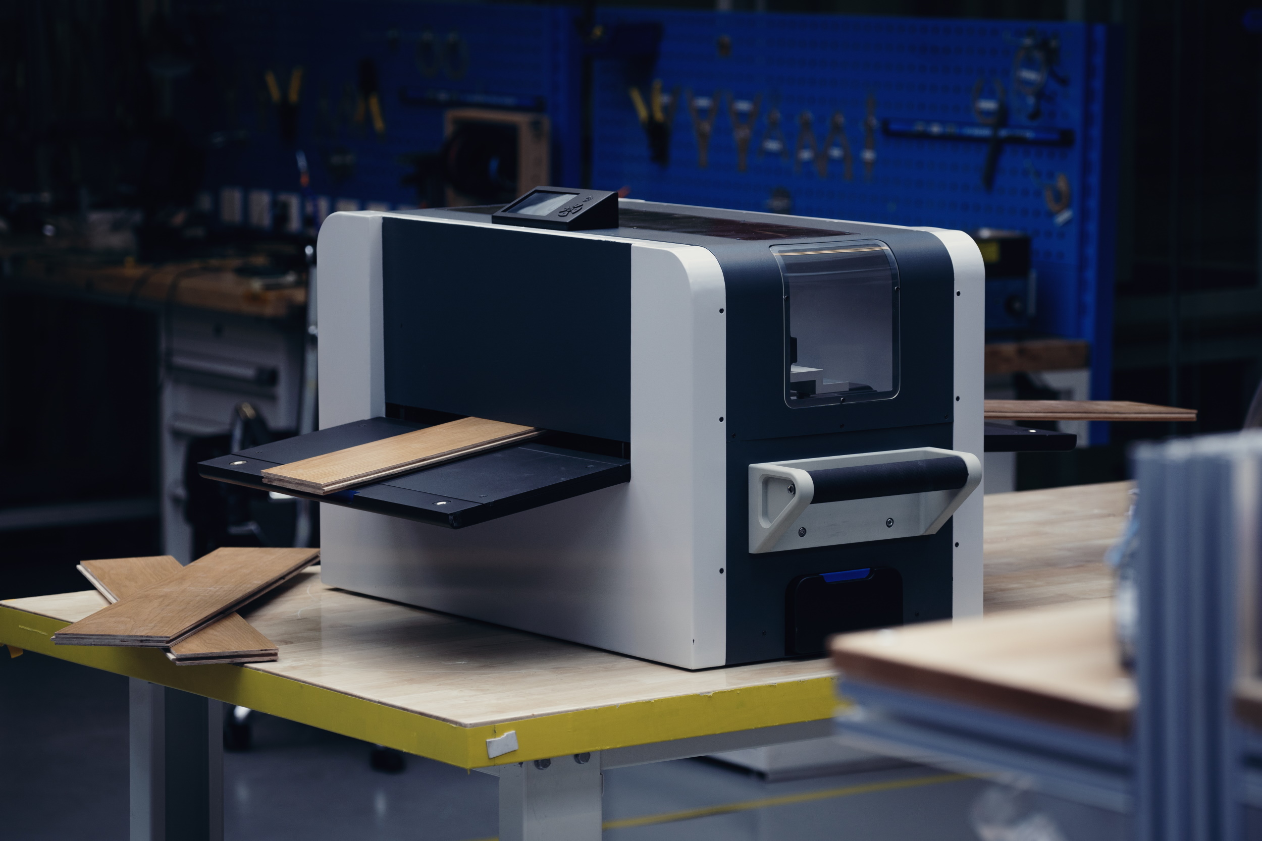 “There are lots of automatic cutting systems — often big, heavy, expensive and operated by professional CNC technicians. To cut flooring on a machine like that involves setting up jigs, clamping and reclamping each board, and generating custom gcode for each stair we cut,” Blumer said. They can be several times more costly and difficult to employ. “The cutting solution we’re building is compact, requires no clamping, and can be operated with just a few hours of training.”