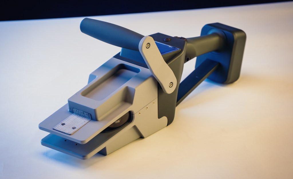 The device they settled on is essentially a super-precise lidar that measures around itself in wide arc, and the exact details of which comprise part of the company’s secret sauce. This gives the precise dimensions and attachment angles of the area around it, in the first intended use case a stair. The design, helped along by HAX’s Noel Joyce, looks a bit like a giant Dust Buster by way of the original “Alien.”