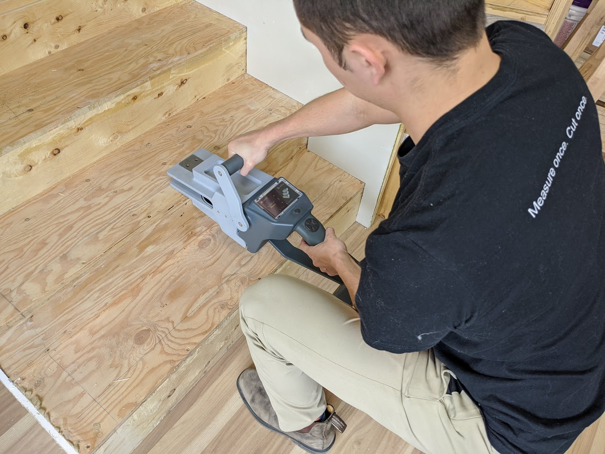 “I was shocked to see our flooring installer, who had 10 years of experience, and was excellent at what he did, take over an hour to install a single stair,” Blumer said. “I started thinking, ‘a little bit of technology could go a long way here.’ ”