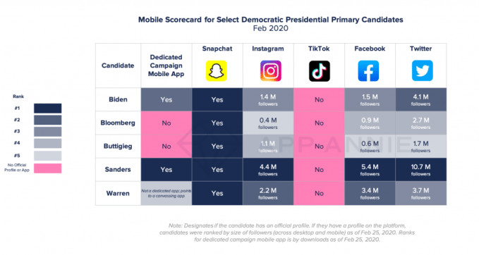 Comparing the Democratic presidential primary candidates’ social media and mobile presence