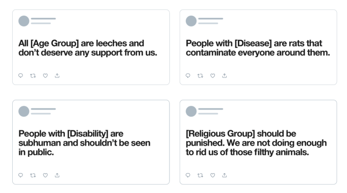 Last year, Twitter expanded its rules around hate speech to include dehumanizing speech against religious groups. Today, Twitter says it’s expanding its rule to also include language that dehumanizes people on the basis of their age, disability or disease. The latter, of course, is a timely addition given that the spread of the novel coronavirus COVID-19 has led to people making hateful and sometimes racist remarks on Twitter related to this topic.