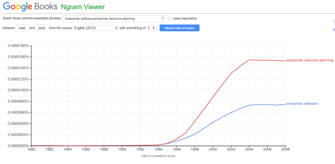“Enterprise” was officially the coolest new vernacular and after industry behemoth IBM bought Lotus in 1996, they incorporated “Enterprise” across all of their products. And while Gartner’s 1990 paper “ERP: A Vision of the Next-Generation MRP II” by Wylie is the technical birth of ERP software, no one cared until Commander Riker told Harold to “monitor your entire Enterprise from a single point of control.” The ngram numbers don’t lie: