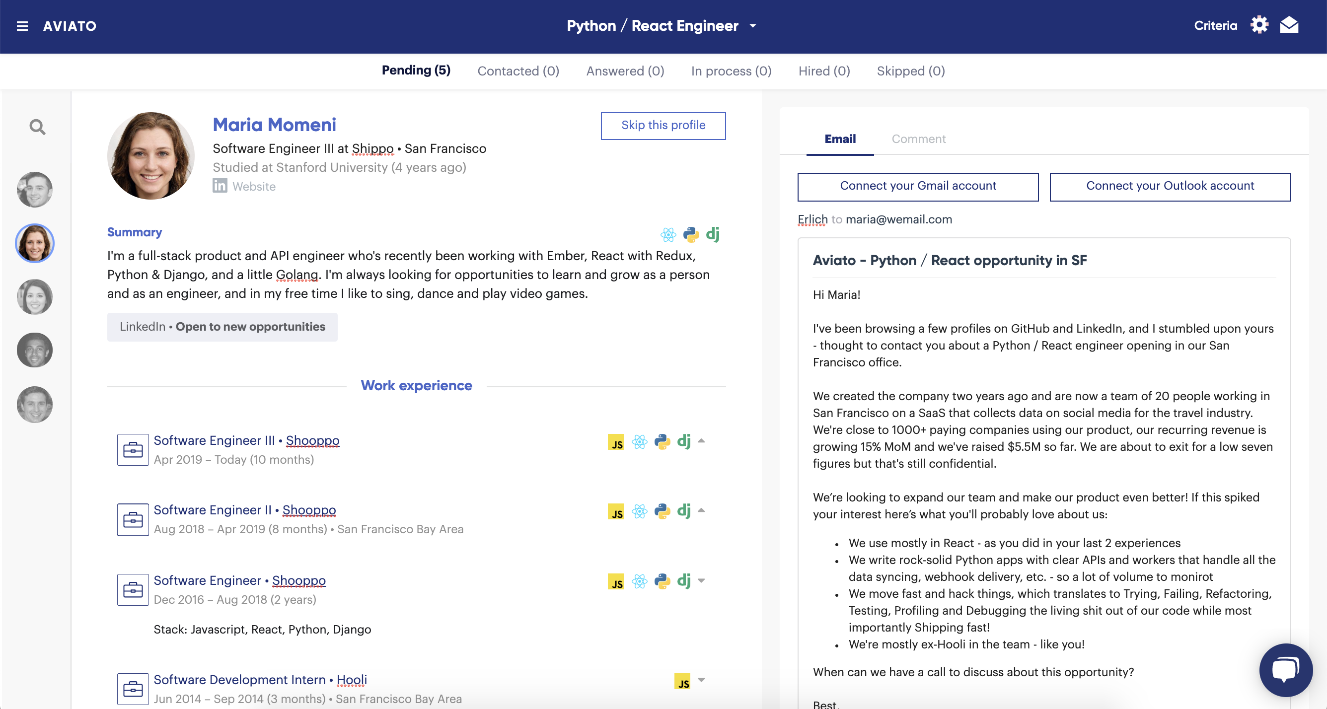 To recruit these candidates, companies first have to identify these passive candidates and then essentially apply to them, the same way a candidate would apply to a job. Traditionally, recruiters have been doing this manually, by looking at LinkedIn and GitHub — or by outsourcing this work to agencies.