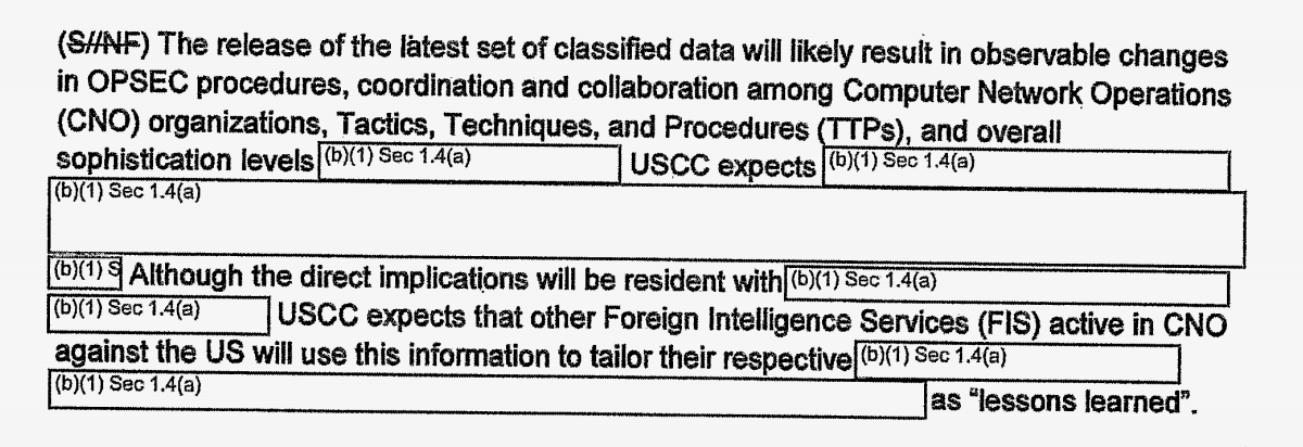 Cyber Command wrote its findings in a so-called situational awareness report dated December 2010, just days after The New York Times and several other news outlets published the full cache of diplomatic cables, albeit with redactions to protect sources. The highly redacted assessment warned that the military cyber unit expected to see foreign intelligence services active in cyber-espionage against the U.S. “use the information” published by WikiLeaks to their own advantage.