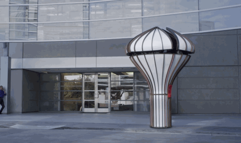 With its techno-organic curves and flower-like hatch on top, the 10-foot-tall station seems to channel the likes of “Star Trek: The Original Series” and “Lost in Space,” and no doubt it’s intended to be eye-catching as well as functional.
