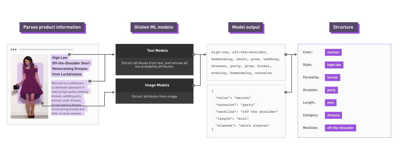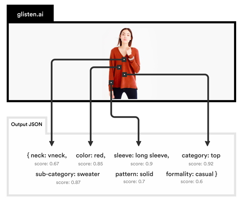 That’s not hard to do for one image, but a clothing retailer might have thousands of products, each with a dozen pictures, and new ones coming in weekly. Do you want to be the intern assigned to copying and pasting tags into sorted fields? No, and neither does anyone else. That’s the problem Glisten solves, by making the computer vision engine considerably more context-aware and its outputs much more useful.