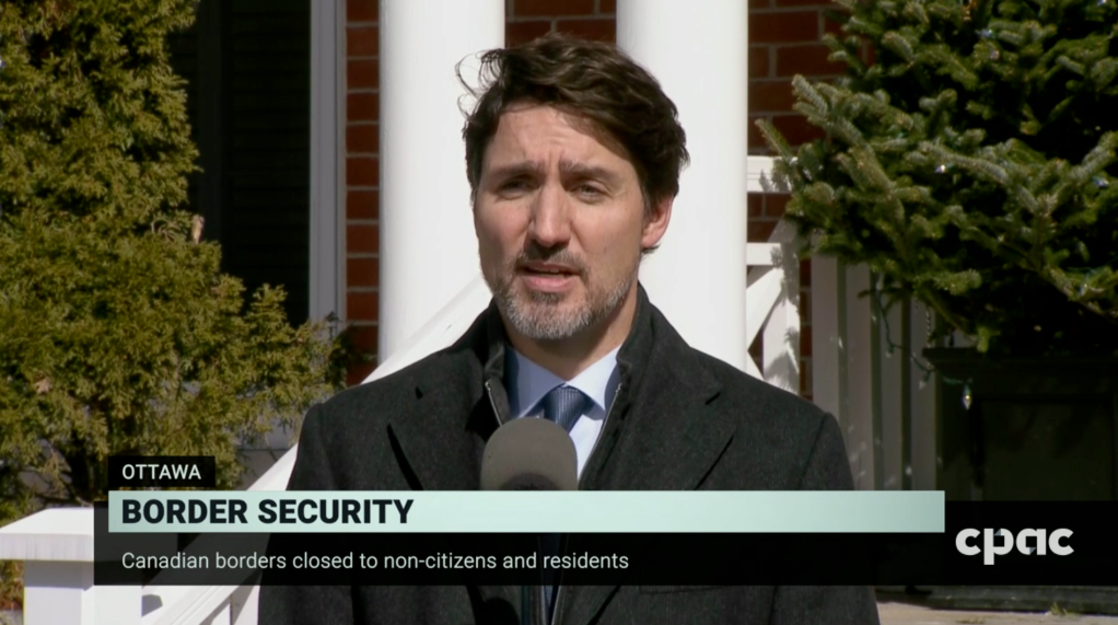 Canadian Prime Minister Justin Trudeau announced a number of additional measures being taken at a federal level in Canada to prevent further spread of the coronavirus within the country. The most extreme is that Canada is closing its borders to non-citizens and anyone not holding permanent residence status, with the exception of U.S. citizens, though this won’t apply to commercial freight and cargo transportation necessary for doing business.