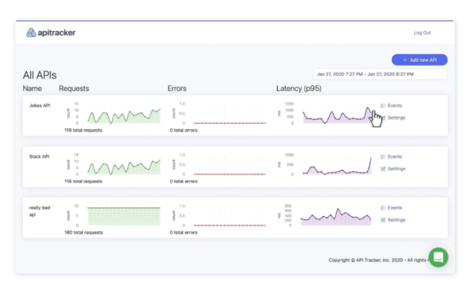 apitracker: Even if your website seems to be loading fine, the APIs you use to make it work might be having trouble, breaking things in not so obvious ways. Apitracker… tracks your APIs. It monitors the APIs you use, alerting you when one of them starts to fail and providing insights into their overall performance.