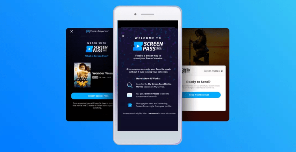 Movies Anywhere, the digital locker service that lets you access your purchased movies from across services including iTunes, Vudu, Prime Video, YouTube, Xfinity and others, is preparing to launch a new movie-sharing option. According to a report from CNET, the service today will begin testing a new “Screen Pass” feature that allows users to share a movie with friends via a text message sent from the Movies Anywhere mobile app.