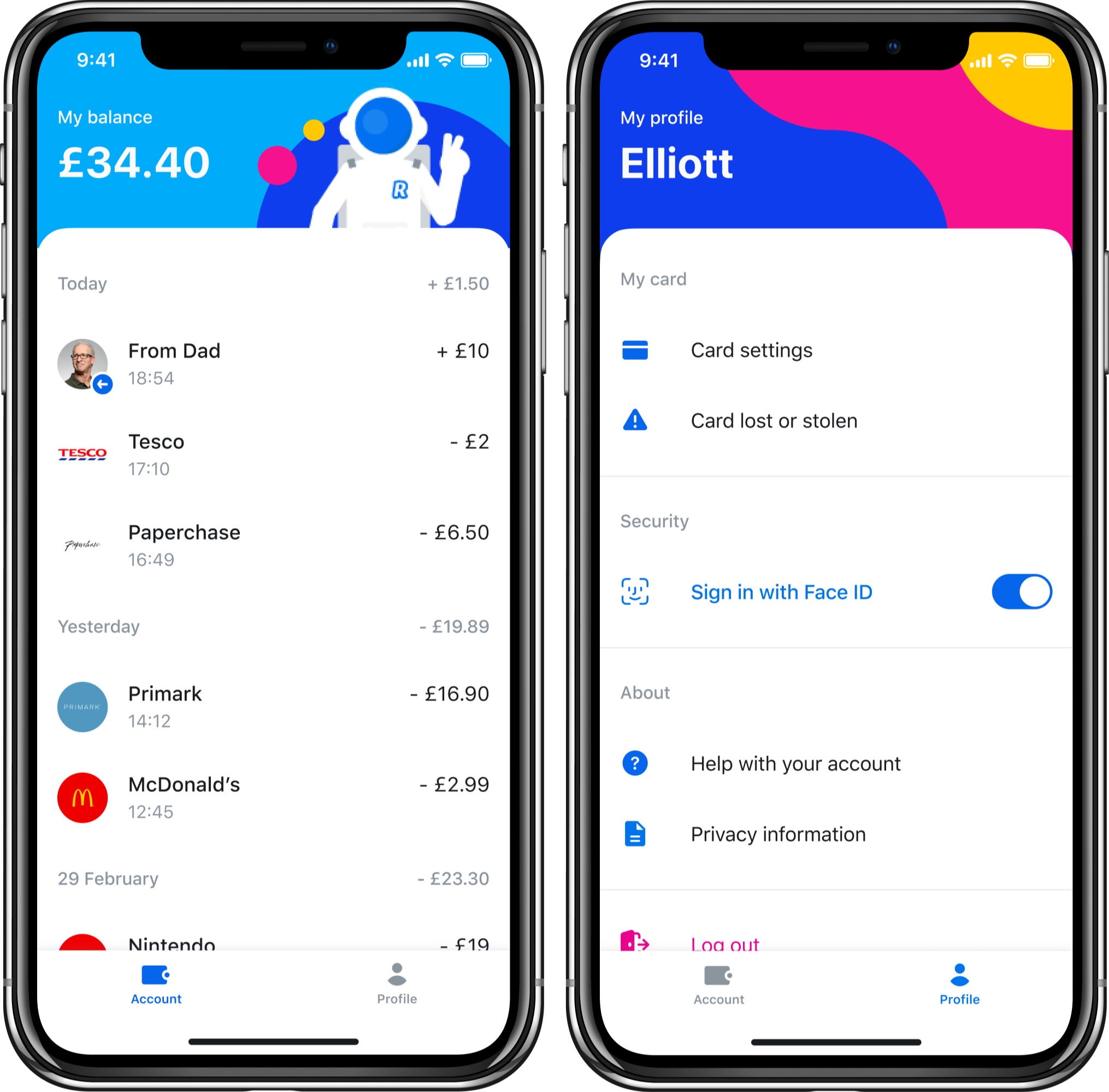 The new app offers a limited set of features with an interface divided in two tabs: Account and Profile. Kids can see a list of transactions in real time in the Account tab. They can configure card settings in the Profile tab, and that’s about it.