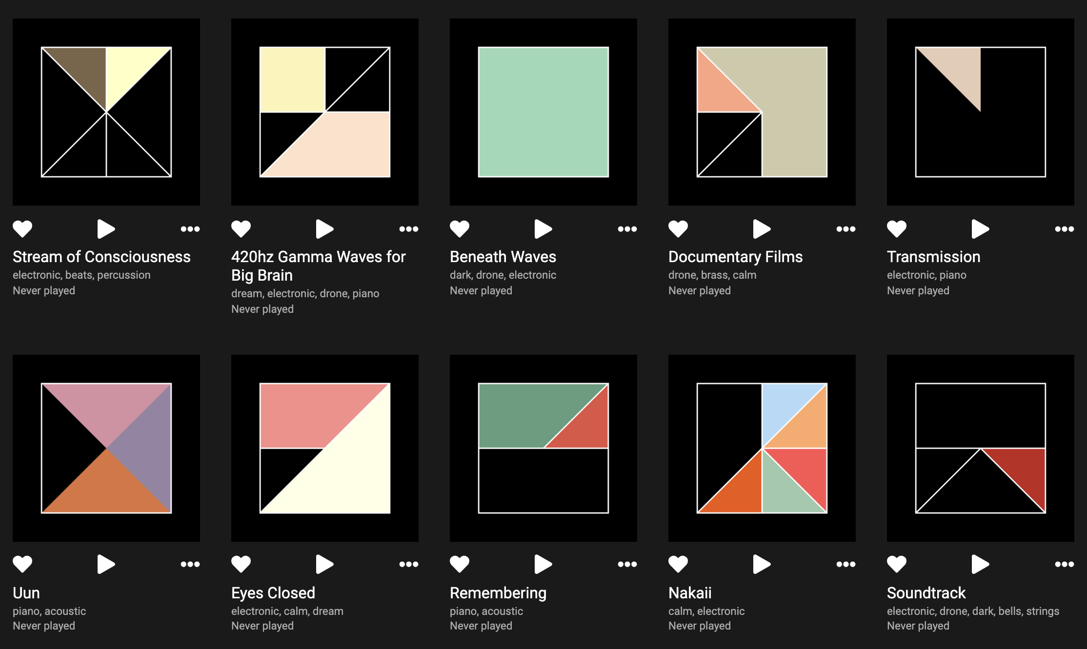 People who haven’t worked from home much likely don’t have a big selection of ambient music that’s easy to work through. This site has dozens of pleasant but not distracting procedurally generated streams that go forever.