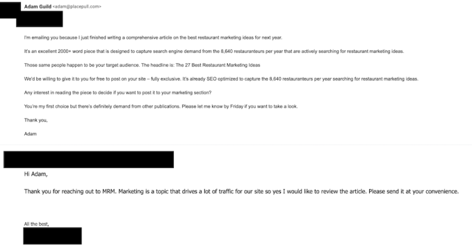 In my email pitch to each of those three editors, I called out the benefit of publishing my piece: driving the 8,640 restaurateurs annually who are searching for restaurant marketing ideas to their website. That’s a lot of targeted traffic that they can use to build their mailing list and sell ads!