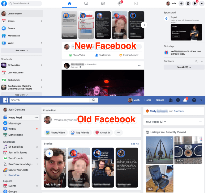Facebook today officially rolled out its sweeping desktop redesign that offers dark mode, tabbed home screen and a cleaner profile. Facebook tells TechCrunch that “starting today, the majority of people on Facebook will have access to the new desktop design,” which it announced at last year’s F8 conference. Users can opt-in to turn on the redesign before it becomes the default for everyone later this year.