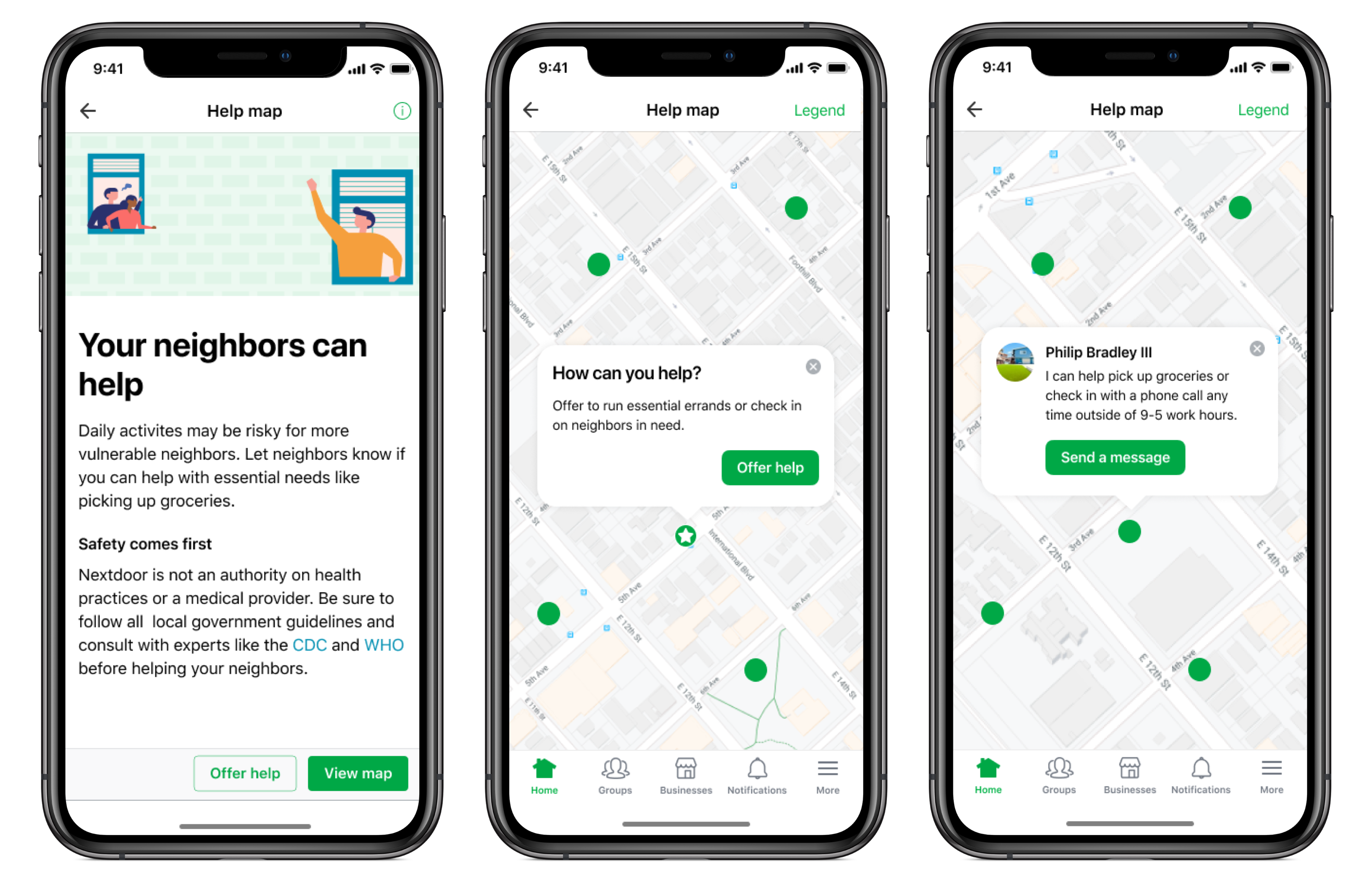 Neighborhood social networking app Nextdoor has introduced two new features, Help Maps and Groups, to give people a way to better support one another during the coronavirus outbreak. The Help Map offers a way to coordinate aid between those in need, like the elderly and at-risk, and those willing to offer some form of assistance — like running errands or dropping off supplies, for example. Groups, meanwhile, allows smaller groups to network outside of the main feed.